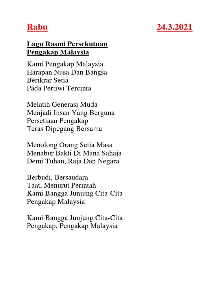 Lirik lirik lagu pengakap cute766 lirik lagu pengakap malaysia. Lagu rasmi pengakap malaysia versi tahun 2021.